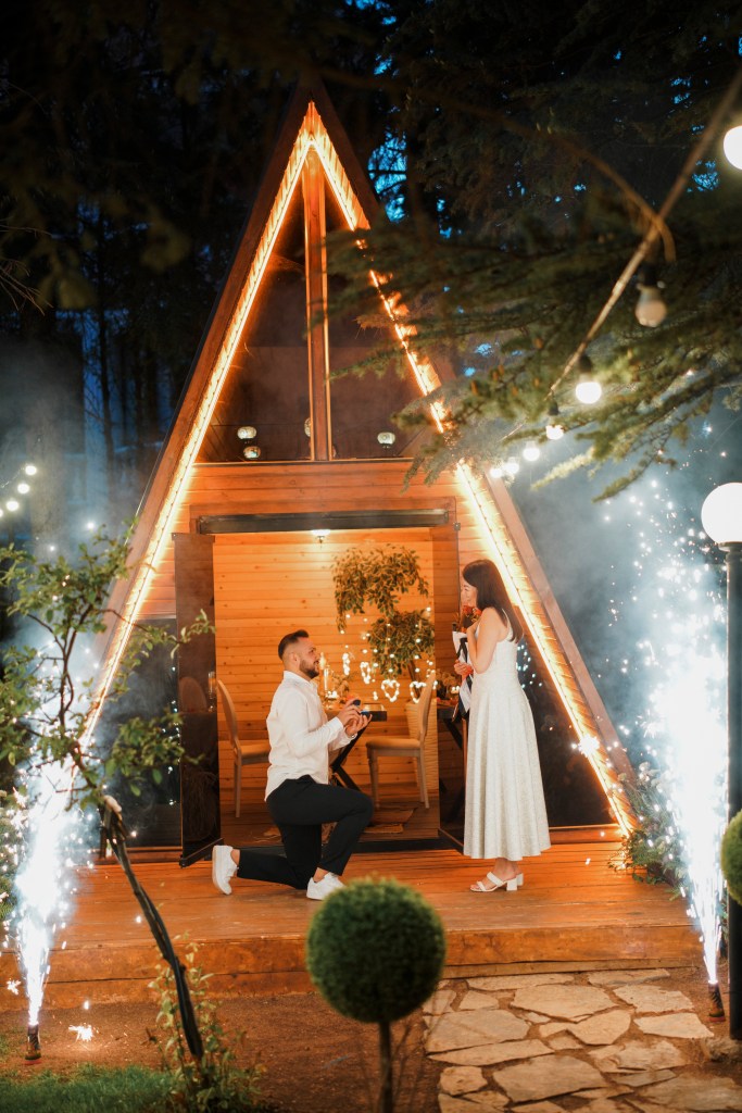 Bungalov temalı evlilik teklifi paketimizde; romantik süsleme, özel ikramlar, profesyonel çekimler ve daha fazlası sizi bekliyor. 💍✨